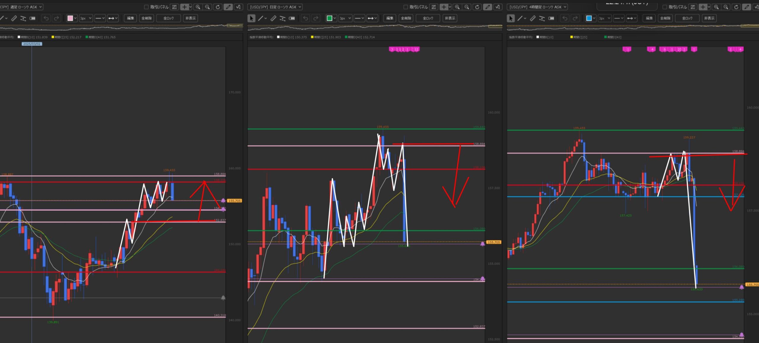 - 4H 下目線 下降トレンド