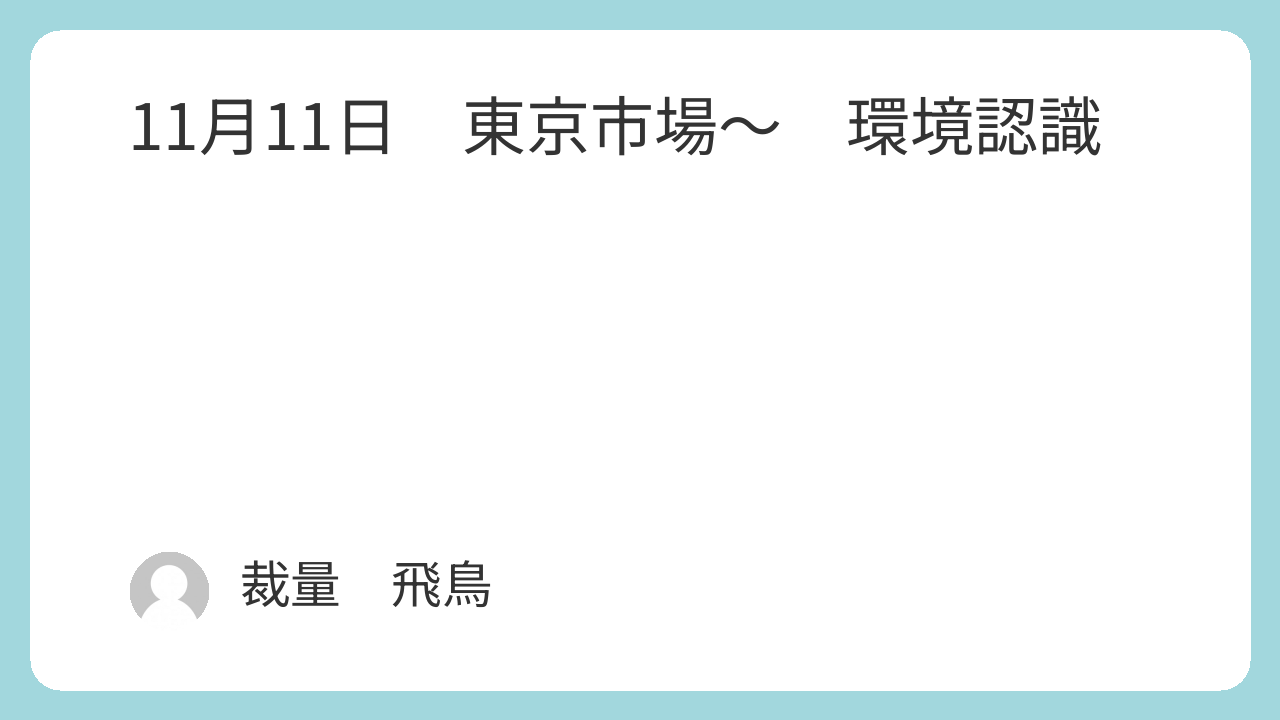 11月11日 東京市場~ 環境認識