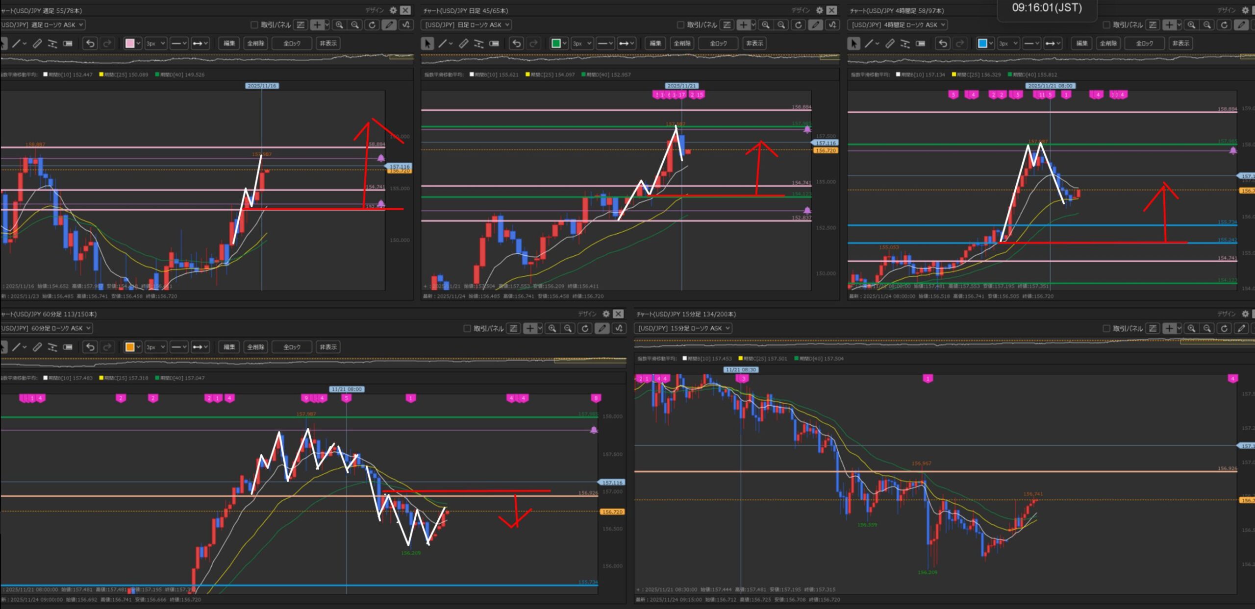 その時は安値起点までしっかり引っ張ってからエントリータイミングを計る。上位足が上目線なので下がると思ったら起点まで上がってくるケースも…要注意ですな(・∀・ )