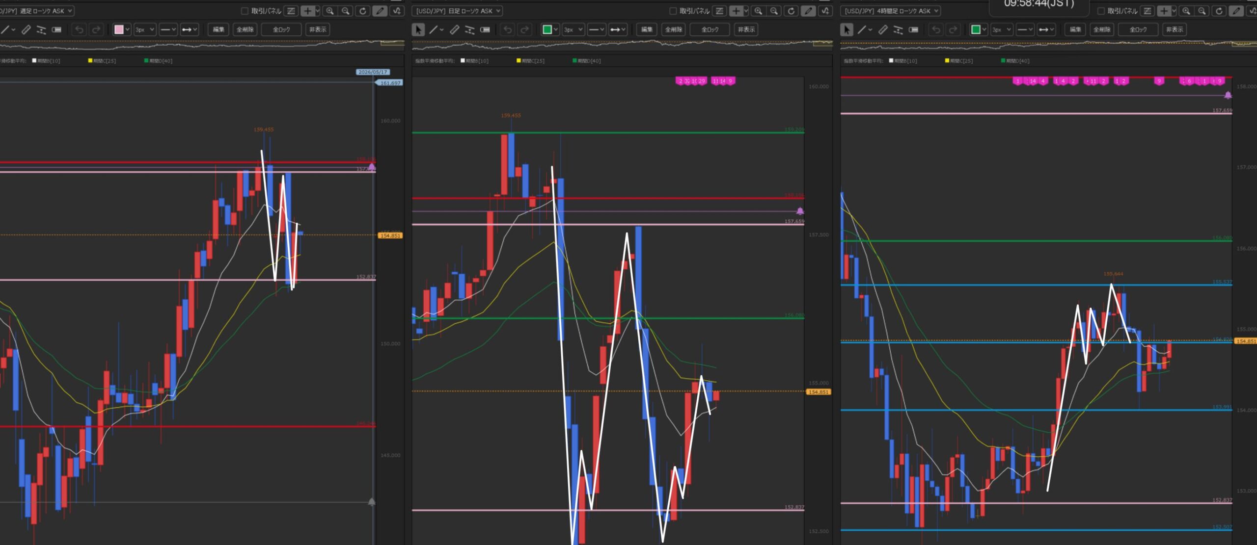環境認識(左から週足・日足・4時間足)