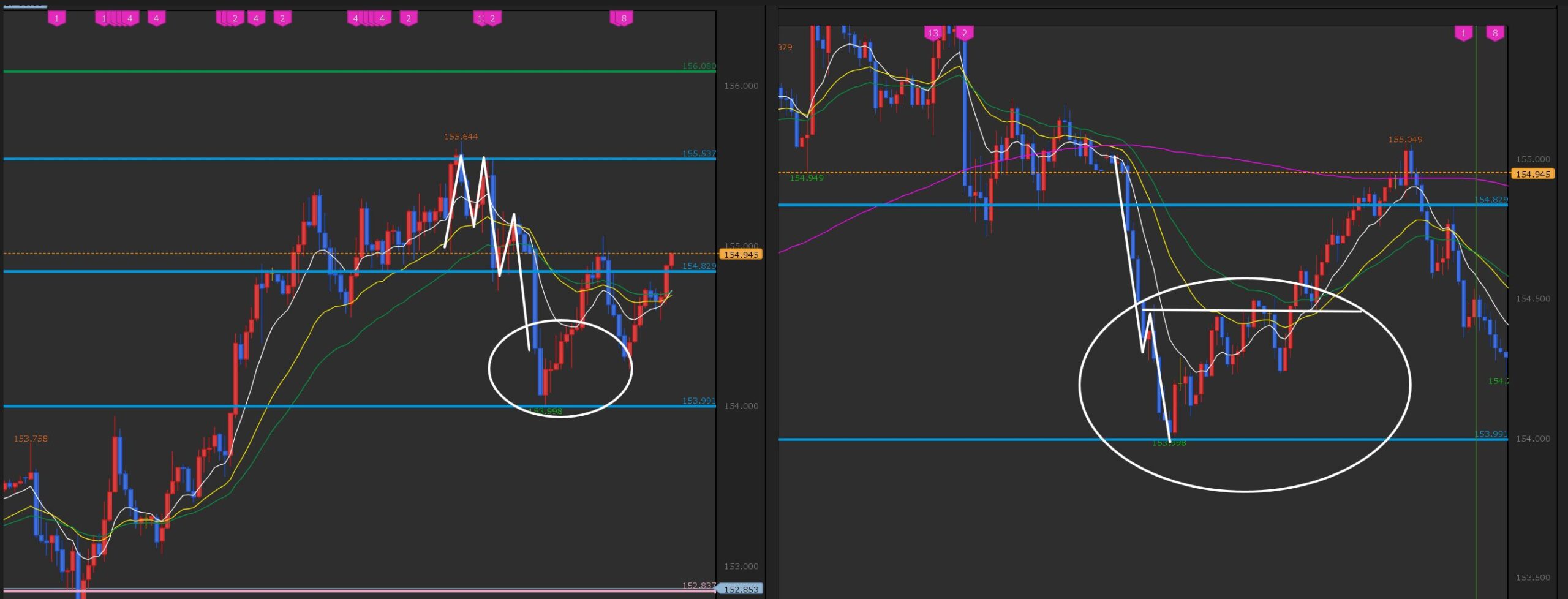 エントリー根拠(画像 左1時間足・右15分足)